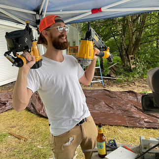 The studio is built with "outsulation", we started by sheathing the building with shiplap boards, then four inch foam insulation with an airgap, and finished with clapboards. That last step was only finished with a ton of help from our frien Evan Anderson.